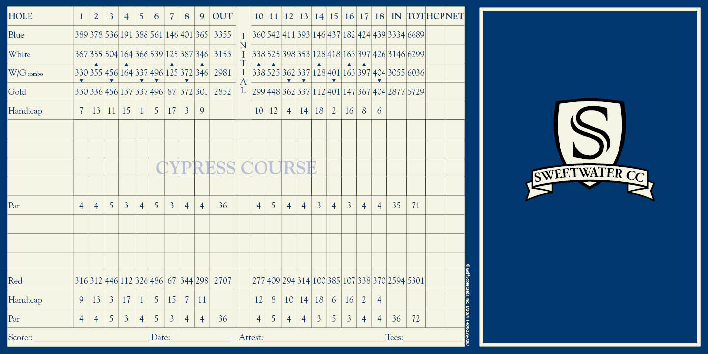 Pecan ScorecardA little shorter, a little sharper — but every bit as strategic. The Cypress Course is Packard at his most precise, rewarding players who think through every shot. It plays with angles, elevation, and water to keep you on your toes, proving that you don’t need length to pack in plenty of challenge.